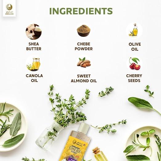 A ready-to-use deep-nourishing hair conditioner formulated with Chebe powder, Shea Butter, and a powerful blend of Sweet Almond Oil, Palm Oil, and Olive Oil. This sulfate-free formula deeply nourishes the scalp and supports healthy hair growth, especially ideal for dry or curly hair types.